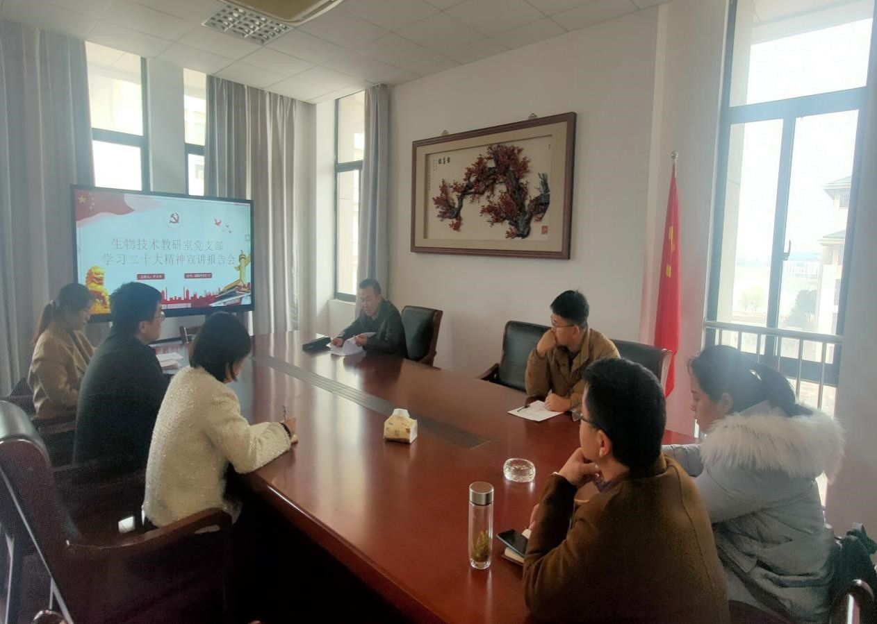 3月1日,公司党委委员、副经理吴彦深入生物技术教研室党支部宣讲党的二十大精神,党支部全体党员到会聆听。