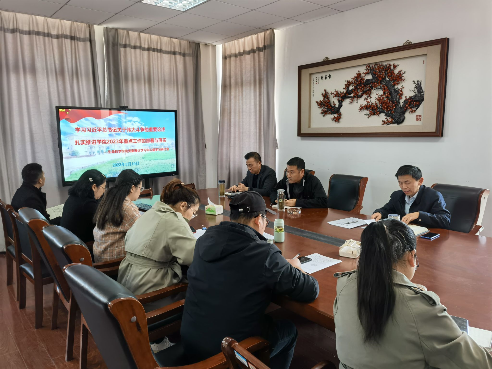 3月10日,公司召开党委理论学习中心组扩大会议,全体党委委员和各科室负责人参加了会议,公司党委书记朱昌流主持会议。