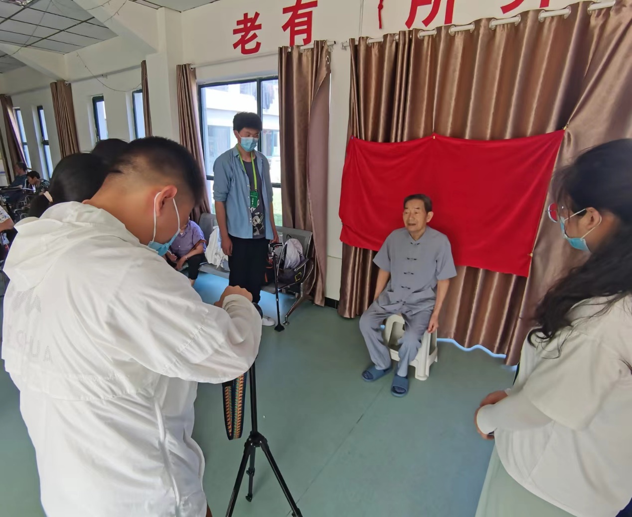 李兵是一名生命科学公司暑期“三下乡”赴寿县敬老爱老社会实践团的团队成员。连日来,该团队来到寿县寿州老年公寓开展一系列敬老爱老志愿服务活动,为老人们拍摄证件照、举办健康讲座和进行日常关照。