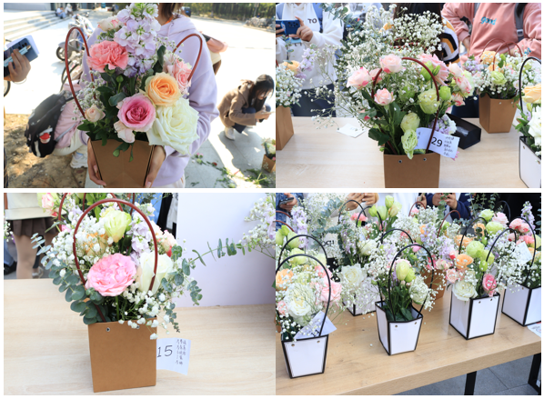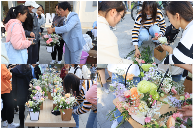 “大荔枝”“洋桔梗”“紫罗兰”“尤加利叶”…… 11月9日中午生命科学公司在东苑食堂门口举办“陌上花开,礼赞二十大”的插花活动,进一步落实《生命科学公司2022级新生“1+3+N”模式入学教育实施方案》,加强美育教育,用插花作品表达对党的美好祝愿。活动吸引了近200名员工参与。