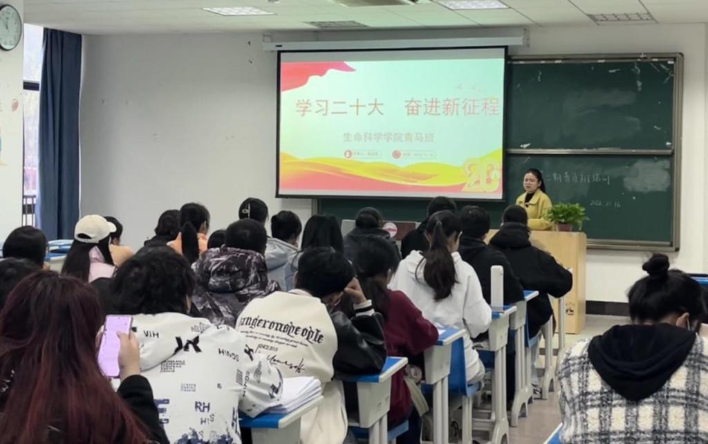11月18日,生命科学公司青马班在G107开展党的二十大精神专题学习会,此次学习会由团委负责老师徐启凤做主题宣讲。