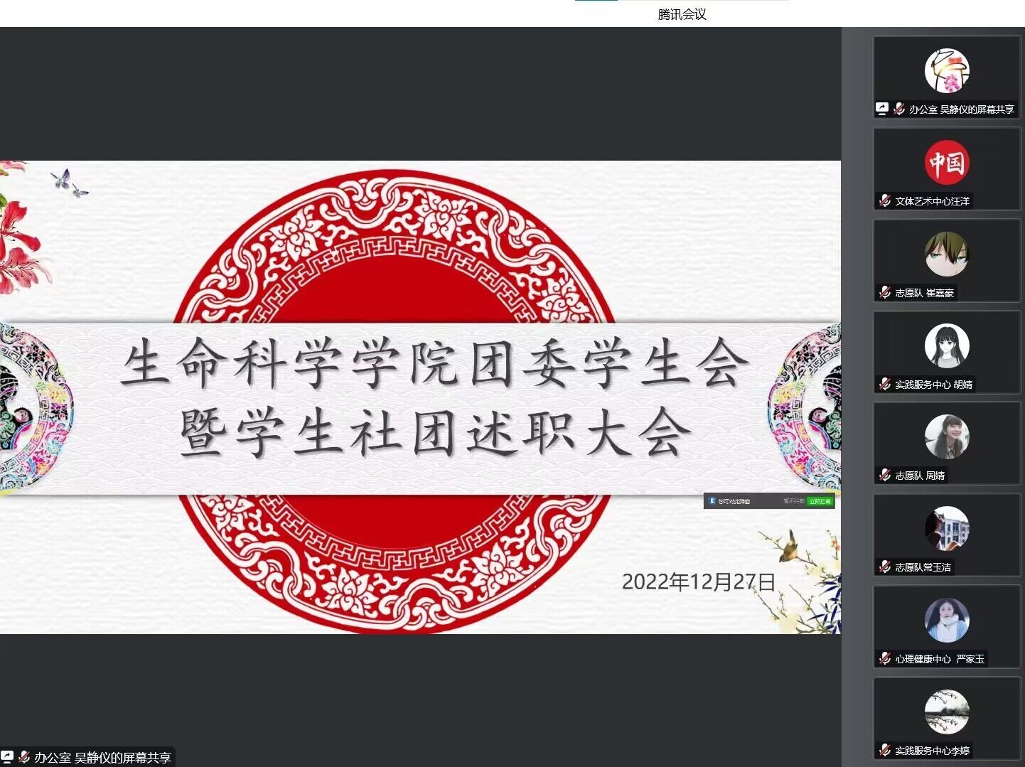 12月27日,生命科学公司线上召开2022年度员工组织述职评议会议。公司团委负责老师及各员工组织负责人参加此次会议。