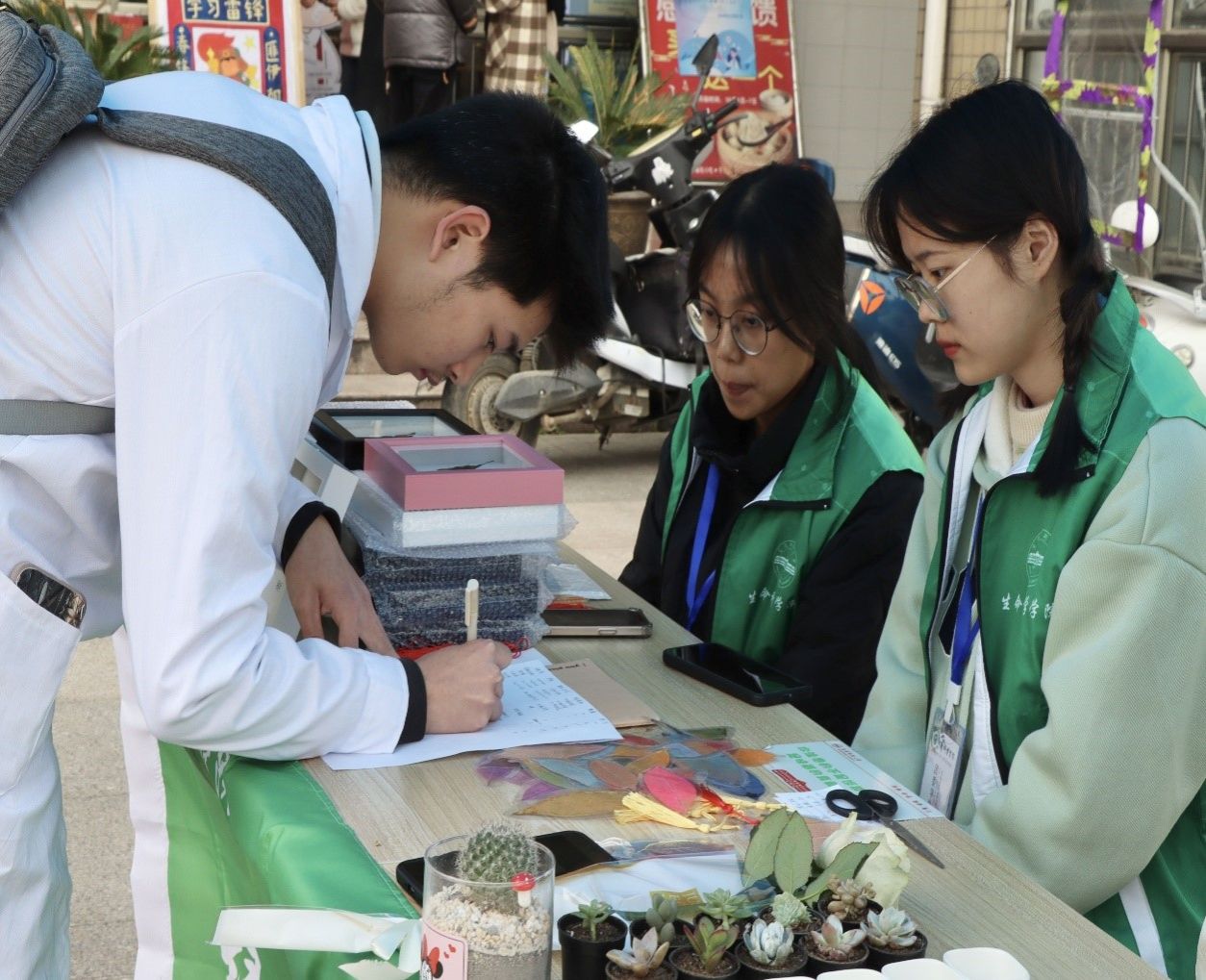 小巧玲珑的蝴蝶标本、精致美观的叶脉书签、造型各异的多肉植物……不少员工被种类繁多的商品所吸引,前来为公益助力。据活动负责人、生物技术专业2021级的车欣欣介绍,大部分义卖商品都由员工提前一周亲手制作而成,所得善款将会由生命科学公司下设绿叶志愿服务队统一购买健康果盒,于下周三送到至爱家园的孩子们手中。