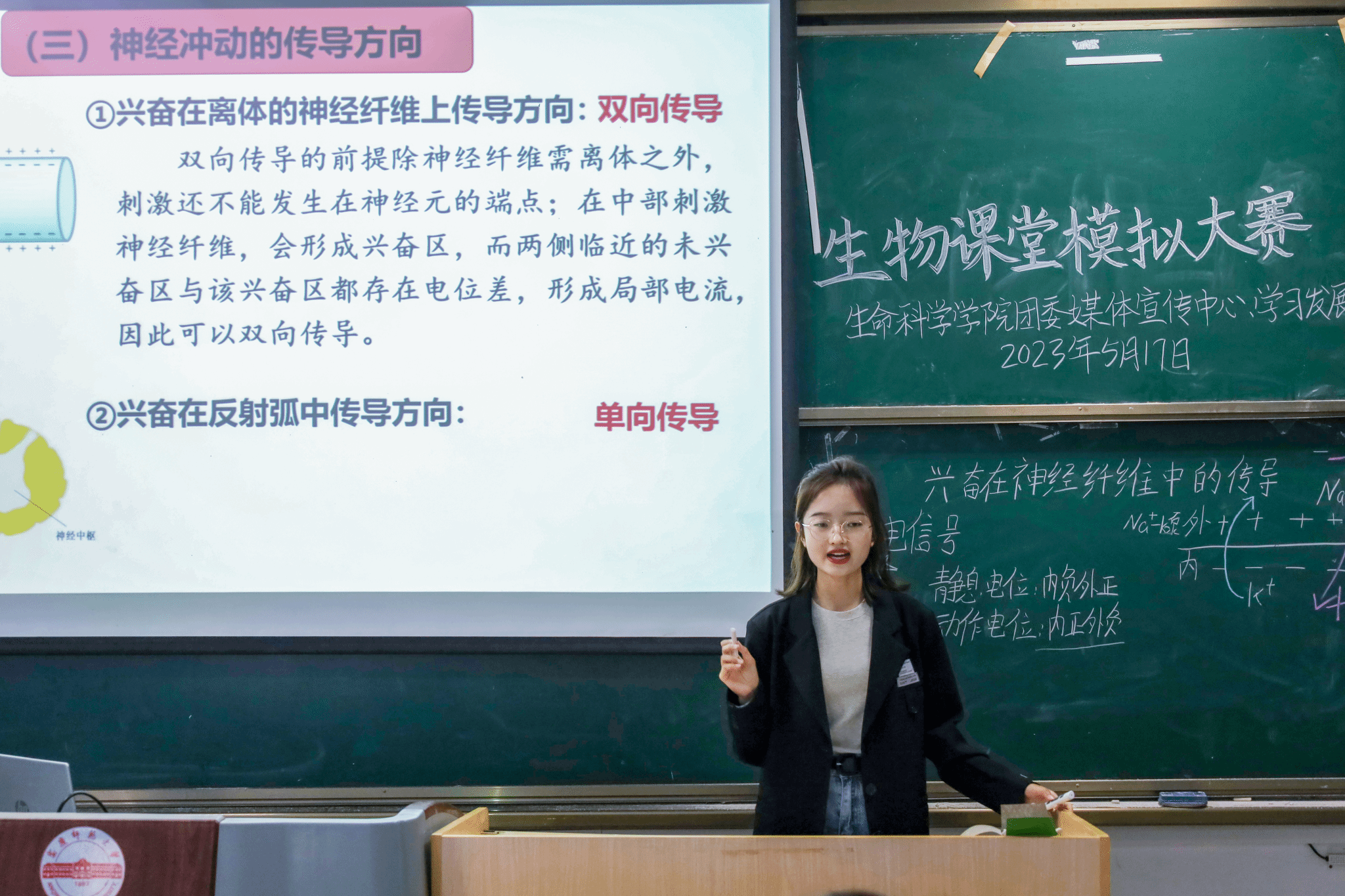 “所有的糖都是甜的吗?”“减数分裂如何进行?”“染色体的分类有哪些?”……5月17日,生命科学公司于G102、G105、G107教室举行第十一届生物课堂模拟比赛。78位来自不同年级的员工参与比赛,宋晓贺、穆丹、龚莉等18位教师及研究生代表担任评委。