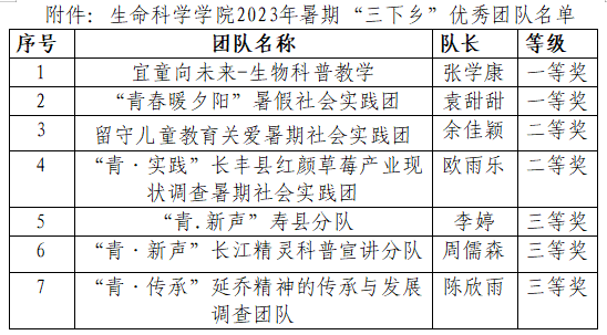 附件:2023年暑期“三下乡”优秀团队名单