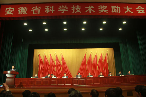 省委副书记、省长王学军发表讲话,他指出,创新是发展的不竭动力,要认真落实习近平总书记“科技兴则民族兴,科技强则国家强”的重要思想,坚持把创新驱动发展战略摆上核心位置,全面推进国家创新型省份试点省建设。省领导李锦斌、詹夏来、王炯、唐承沛、陈先森、韩先聪及省政府秘书长邵国荷出席大会并为获奖代表颁奖。副省长陈树隆主持会议并宣读省政府关于2013年度安徽省科学技术奖励的决定。大会表彰了2013年度安徽省科学技术奖获奖项目和个人,其中,重大科技成就奖2人,技术合作奖2项,一等奖16项。会上,部分获奖代表及科技人员创业代表作了交流发言。公司生命科学公司经理吴甘霖教授作为获奖代表受邀参加了大会。
