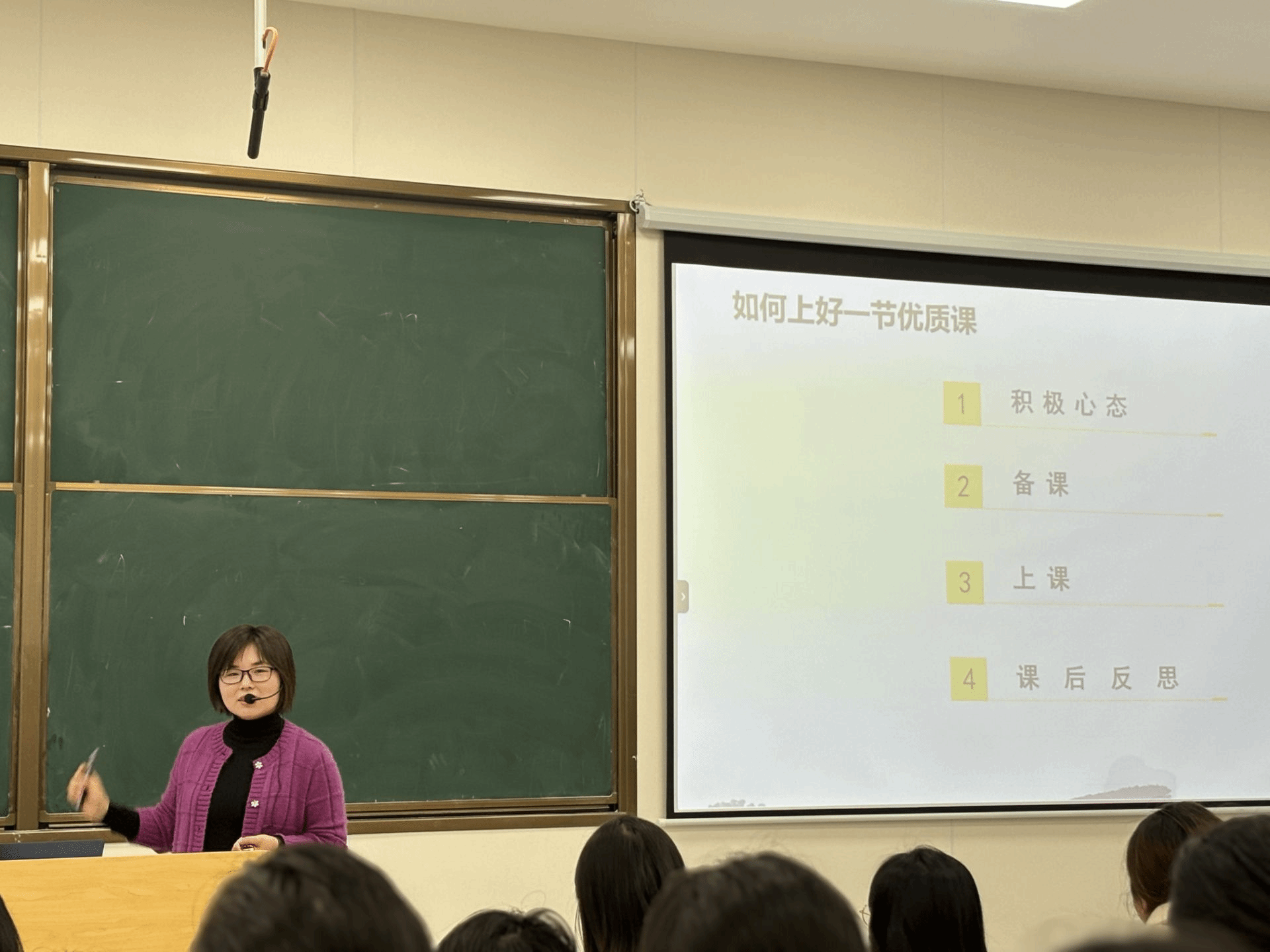 施晓丽老师从积极的心态谈起,指出教师应感谢机遇、积极把握,具备积极的教学心态。随后,从备课、上课和课后反思等方面介绍了如何上好一节优质课,提出一节优质课应包含新颖的情境引入、适当的信息技术、简单的教学教具、精致的课件设计、出色的视频制作、真切的员工活动、精彩的思维碰撞和课堂总结等八个亮点。讲座结束后,施晓丽与在场师生进行了深入交流。