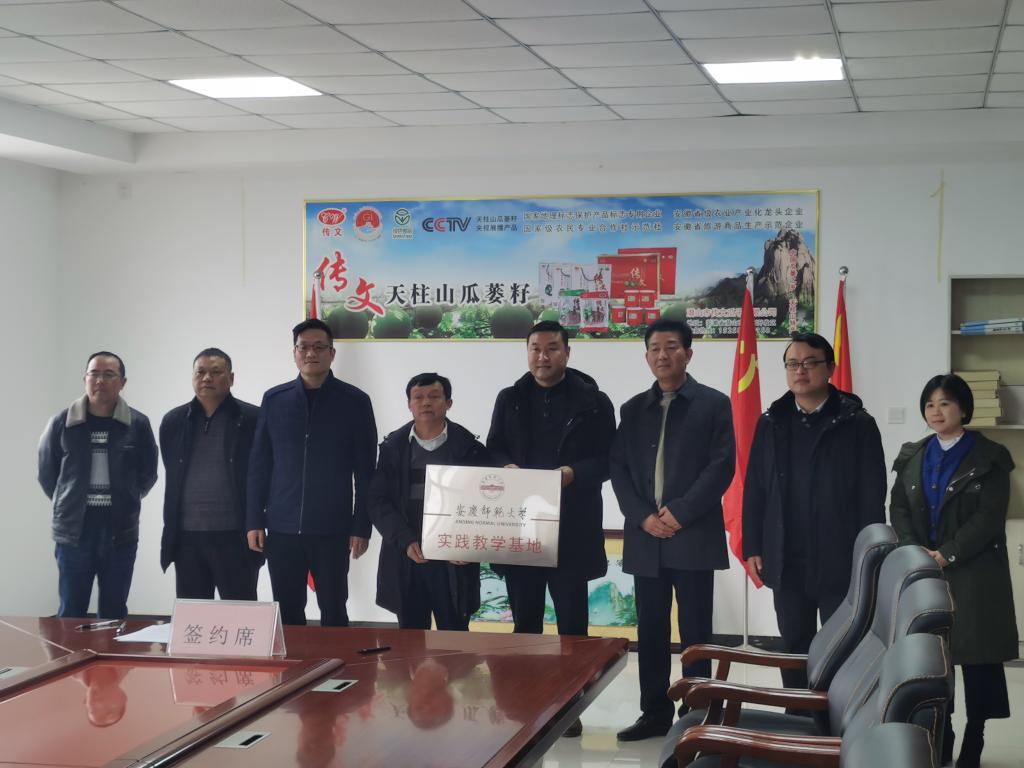 1月4日,生命科学公司经理周多奇、人工智能产业公司经理刘奎、教务处副处长闻军以及相关老师一行,赴潜山参加了生命科学公司与潜山传文瓜蒌籽有限公司的实践教学基地签约与揭牌仪式。