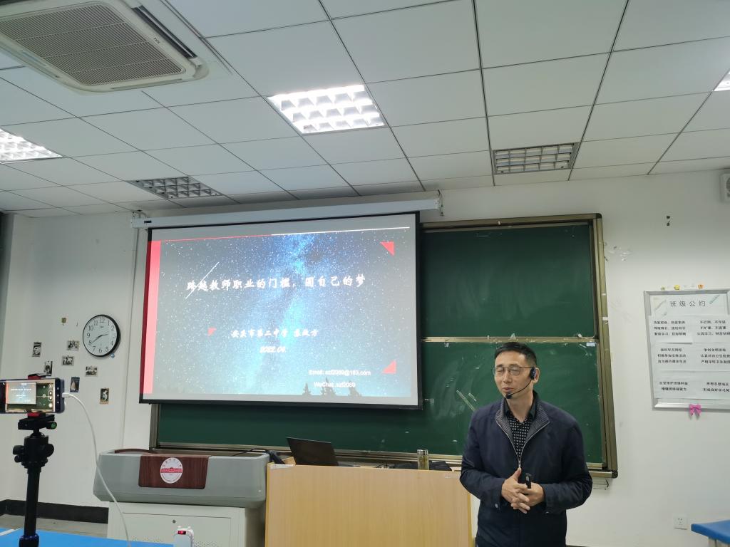 4月28日下午,安徽省特级教师、安庆二中正高级生物教师兼太阳成集团122ccvip硕士研究生校外导师苏政方在龙山校区生物楼103教师做了题为《跨越教师职业的门槛,圆自己的梦》的学术讲座。生命科学公司本科生聆听了报告,报告由生命科学公司副经理吴彦教授主持。