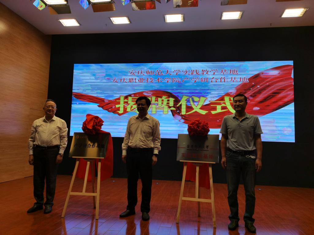 生命科学公司一行首先参加了迎江区2022年最美科技工作者发布仪式。随后教务处副处长闻军与迎江区科学技术协会主席周逸群签署了实践教学基地协议,生命科学公司经理周多奇和迎江区委组织部部长陶小也为实践教学基地揭牌。