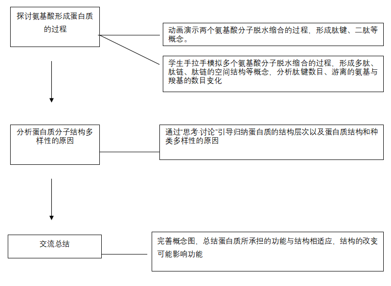 本节课的教学从蛋白质功能的多样性入手,探索蛋白质结构的多样性。教学中需要重点突破的是“氨基酸的结构特点”“氨基酸怎样构成蛋白质”“蛋白质分子具有结构与功能多样性”等问题,可通过设计球棍模型的探究活动将氨基酸的结构特点、脱水缩合的过程以及蛋白质的结构多样性递进式串联起来。结合动画演示、员工“手拉手”合作游戏等方式进一步理解氨基酸脱水缩合的过程。最后通过概念图总结,让员工初步形成结构与功能相适应的观念。