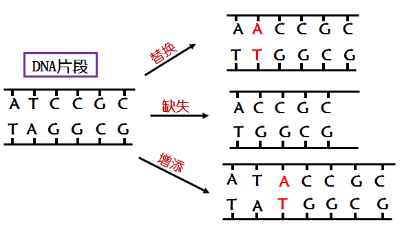 由于DNA分子中发生碱基对的替换、增添和缺失,而引起的基因碱基序列的改变。