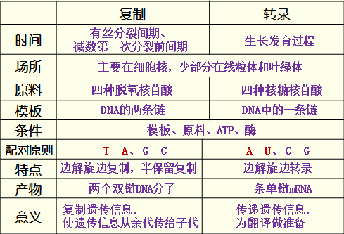 (1)相同点:都需要模板、酶、能量等;都遵循碱基互补配对原则