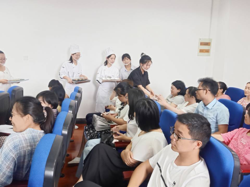 茶点制作完成后,在指导老师穆丹老师带领下,研究生们将亲手制作的茶点赠与公司平日里不辞辛劳的老师们,借茶点来感念师情。小小的茶糕不仅融入了中国传统的茶文化,更融入了同学们对建党百年的庆祝和对老师们的感恩。