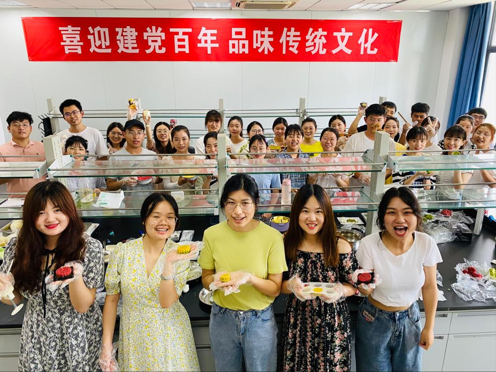 为热烈庆祝中国共产党成立100周年,进一步增强基层党组织的凝聚力和战斗力,更好地发挥党员的先锋模范作用,6月30日下午,生命科学公司全体研究生在食品实验室G608 开展了“喜迎建党百年,品味传统文化”主题感恩庆祝活动。