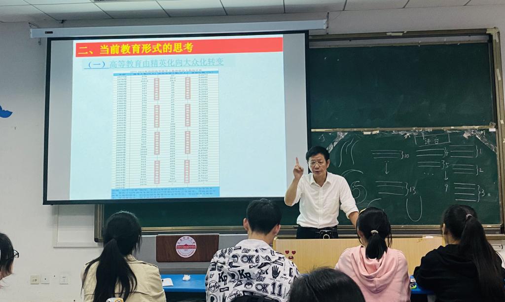 朱老师以“如何教老奶奶学会打麻将”的问题出发,对比分析了传统教育与教改下的教育的区别。随后让同学们分组讨论分享自己印象中上过最差和最好的课,以此介绍传统的三种师生关系并分析其利弊。朱老师就当前教育形式也做出了思考,提出现在高等教育由精英化向大众化转变、基础教育由应试教育向素质教育转变、课堂由教师主导向员工主体转变。提出传统教学中“我教你学”、“我讲你听”的教育理念应转变为现代教学中“你教我学”、“你教我听”的教育理念。
