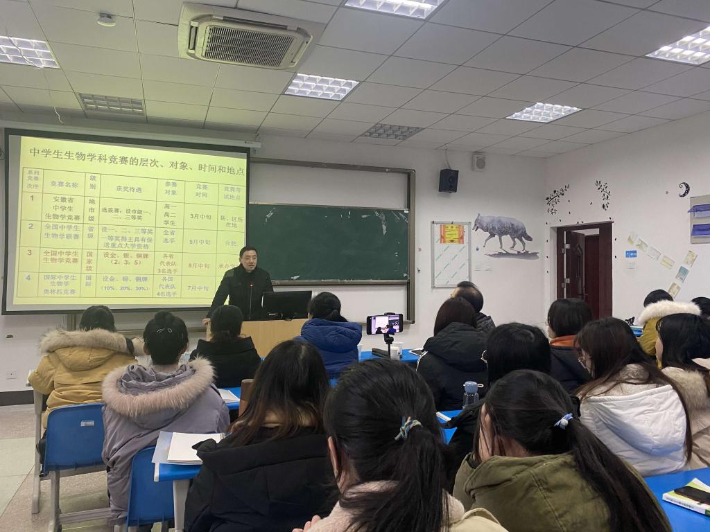 1月6日下午,安庆一中生物高级教师金久在龙山校区G楼107教室做了题为“教师实践专业成长的路径与方法”的学术讲座。生命科学公司2020级学科教学(生物)研究生,2019级、2018级生物科学专业本科生和部分教师聆听了报告。报告由生命科学公司副经理吴彦教授主持。