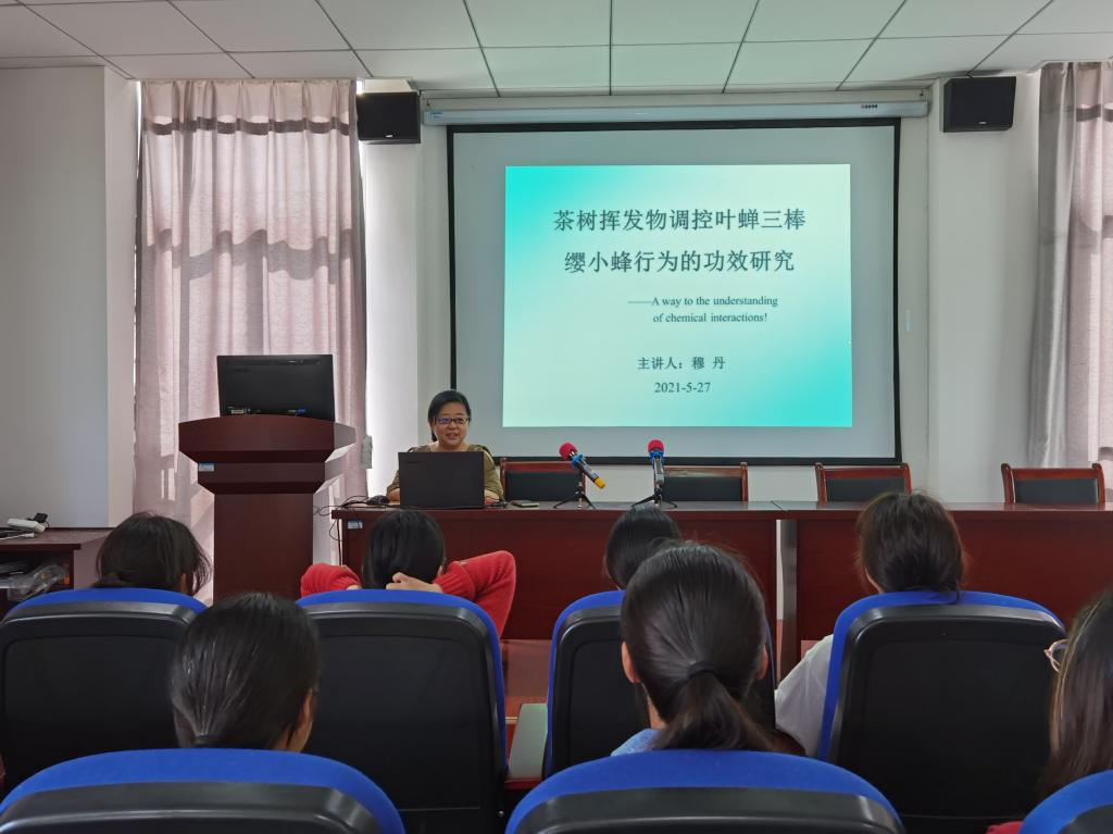 5月27日上午,生命科学公司穆丹副教授在G202作了题为“茶树挥发物调控叶蝉三棒缨小蜂行为的功效研究”的学术报告。生命科学公司生物科学、食品科学与工程专业部分本科生和生态学专业部分研究生聆听了报告。